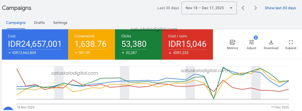 Klien ingin menaikkan budget iklan tanpa membuat biaya per konversi ikut naik.